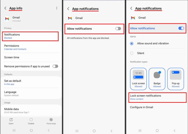 - Settings > Apps & notifications > See all apps > Google Play Store > App notifications > High priority (1,2,3)